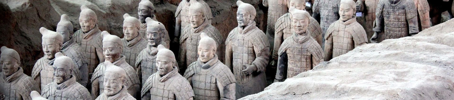 - Con más de 2.200 años de antigüedad, este conjunto reúne más de 6.000 figuras a tamaño real de soldados, carros y corceles que custodian la tumba del primer emperador de China, Qin Shi Huang. La visita incluye también una parada en una fábrica de cerámica para conocer el proceso de elaboración de estas figuras.