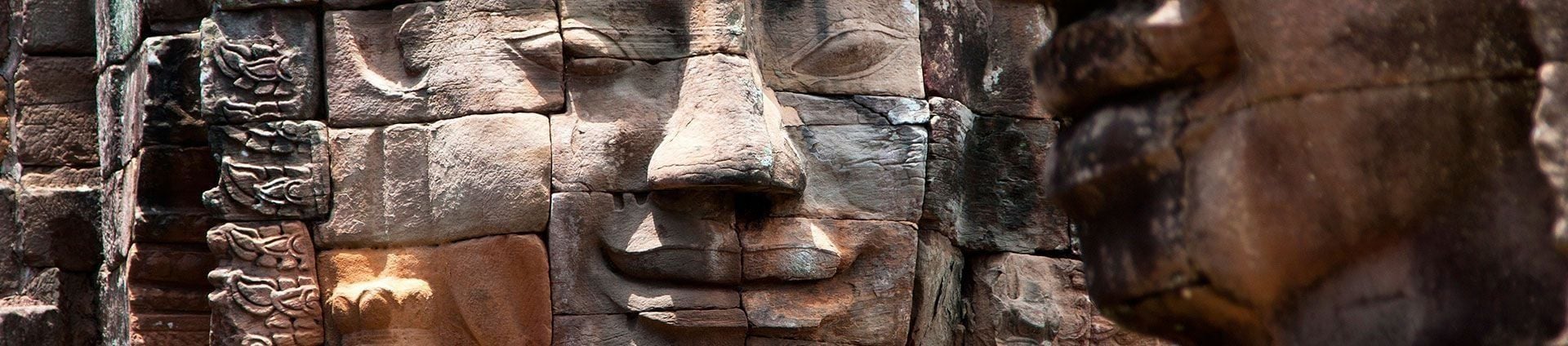 - Salida en Tuk Tuk (moto-carro típico de Camboya) hacia la antigua capital de Angkor Thom. Visita al templo de Bayon, el templo de Baphuon, el Phimeanakas y las terrazas del rey leproso y de los elefantes, así como las cámaras reales. A continuación visitaremos Ta Prohm uno de los más espectaculares templos del área.